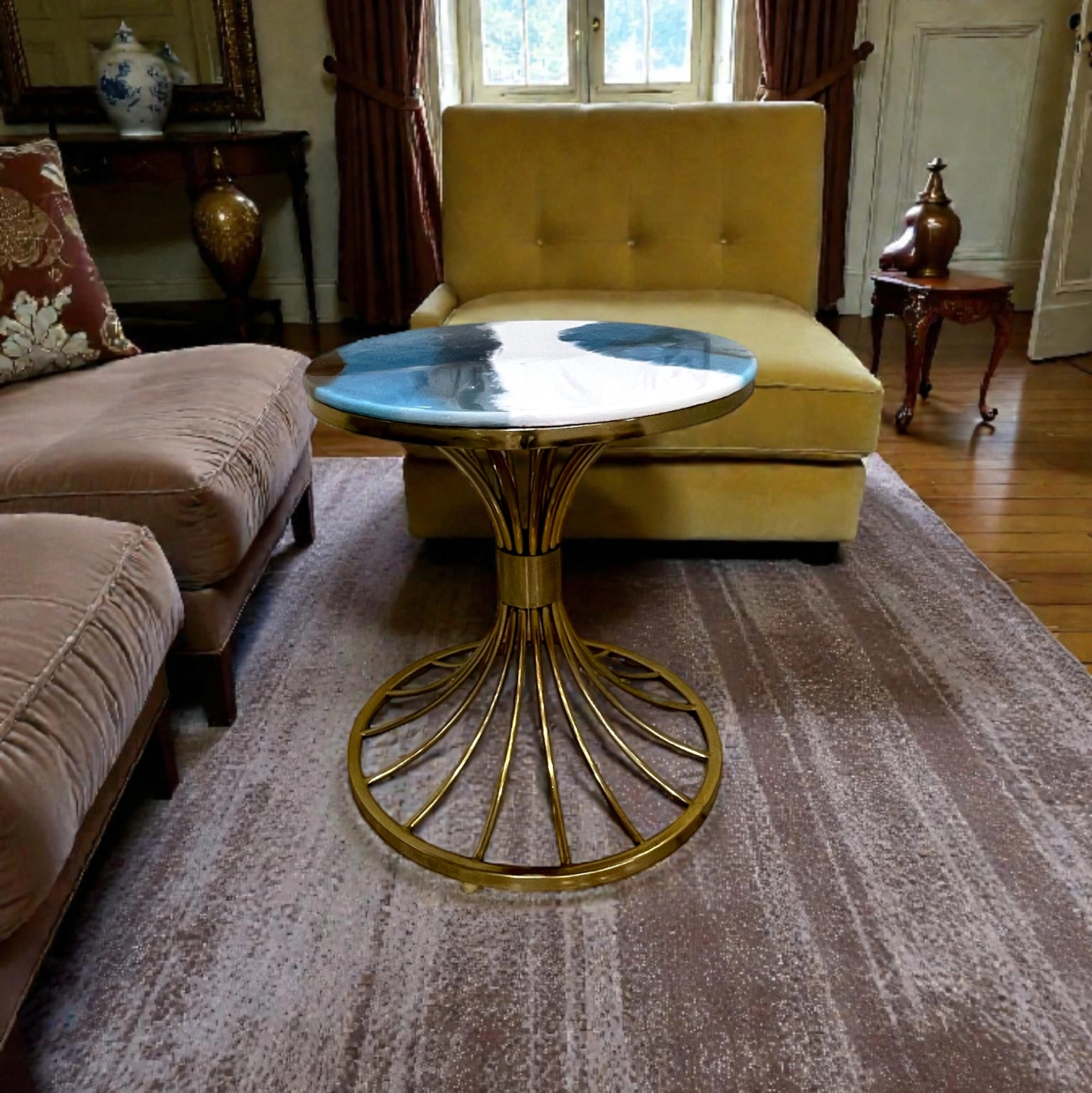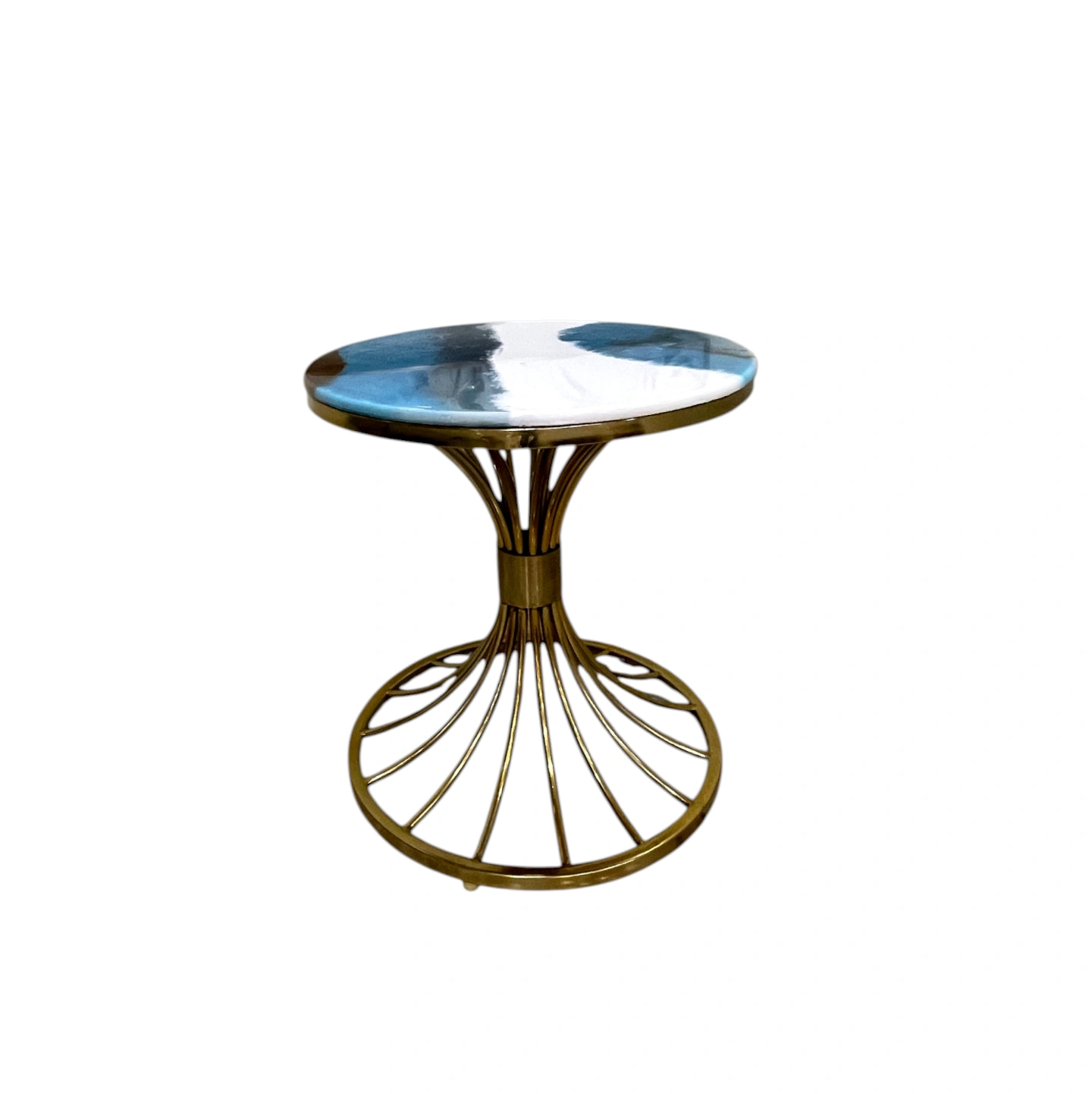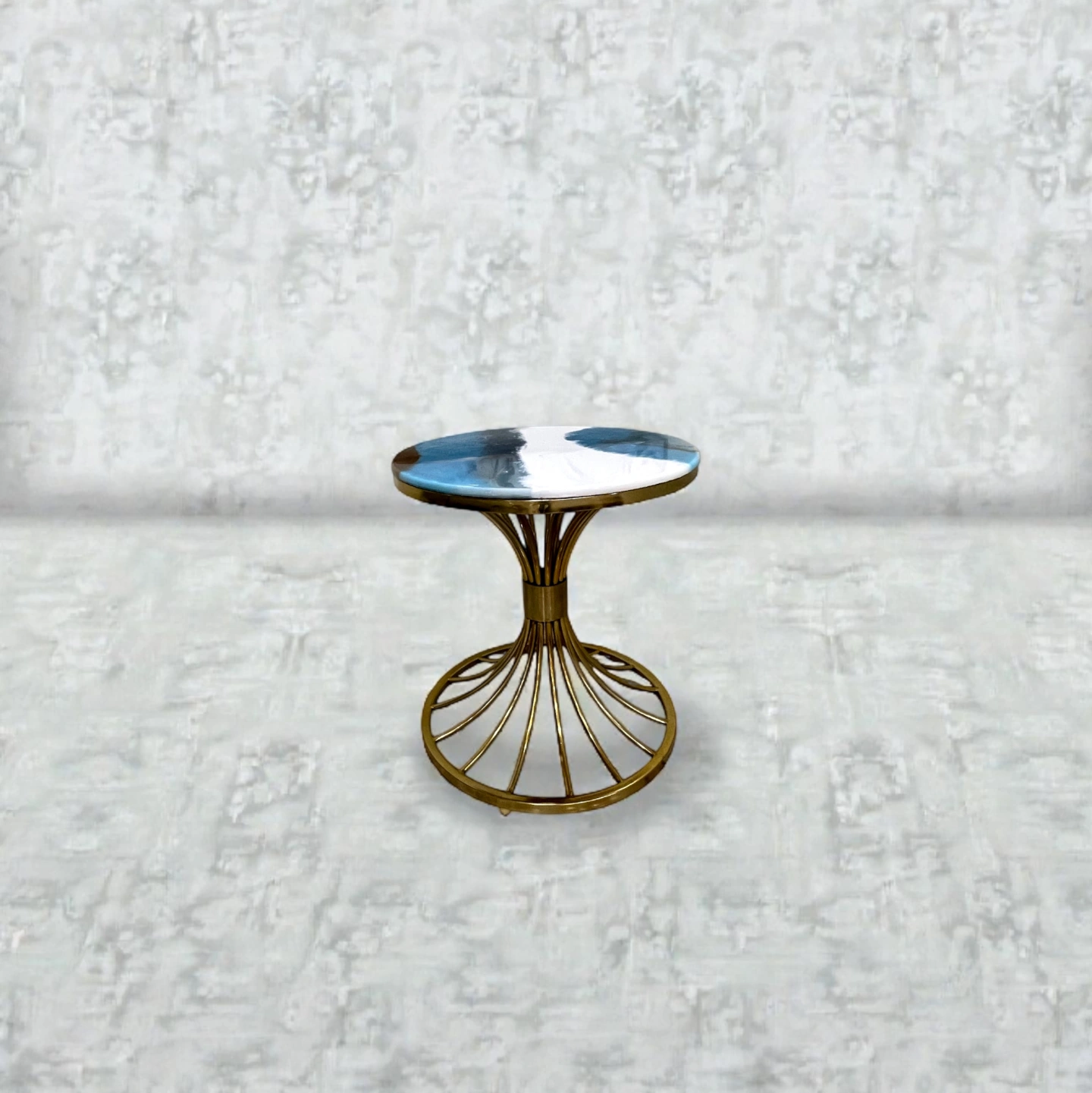 A modern accent table featuring a glossy dual-tone top and a unique golden wire-frame base—perfect for adding elegance to any living space.